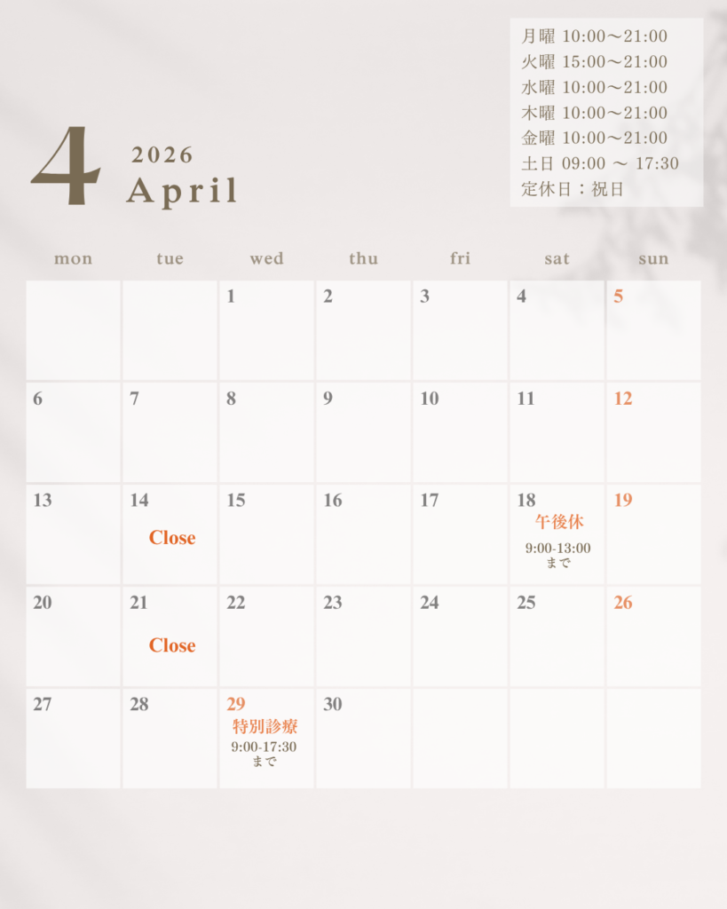🌸【2026年4月】診療スケジュールのお知らせ