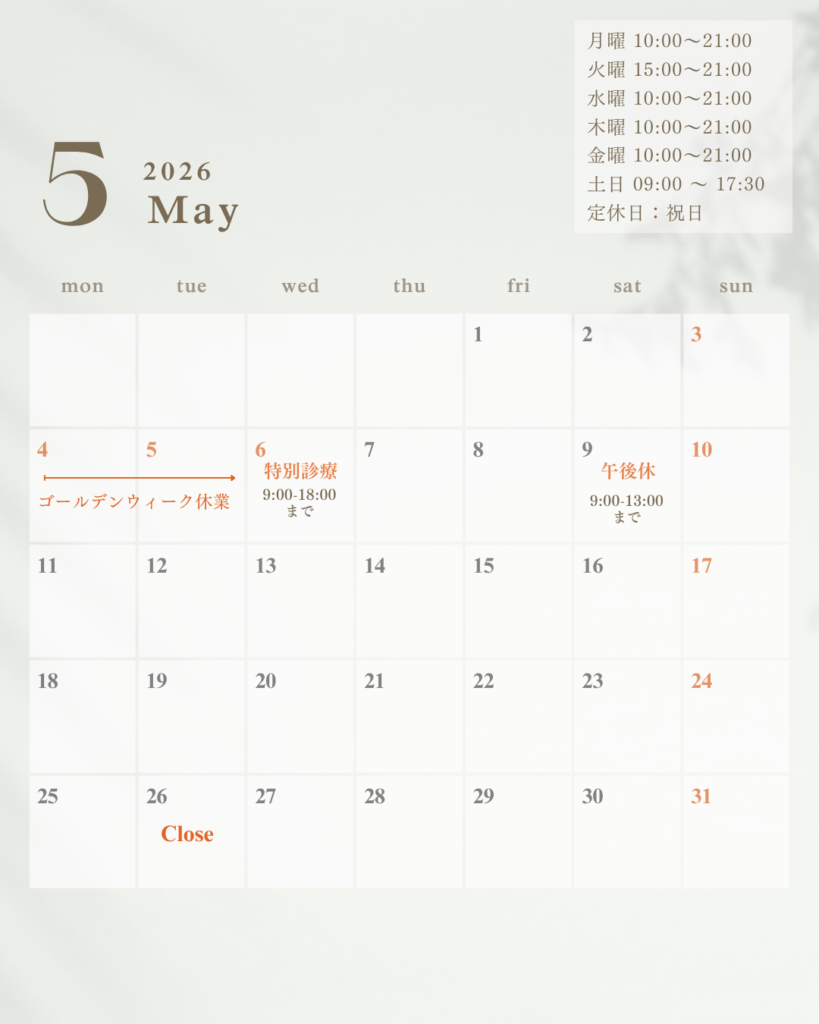 🌿【2026年5月】診療スケジュールとゴールデンウィークのお知らせ
